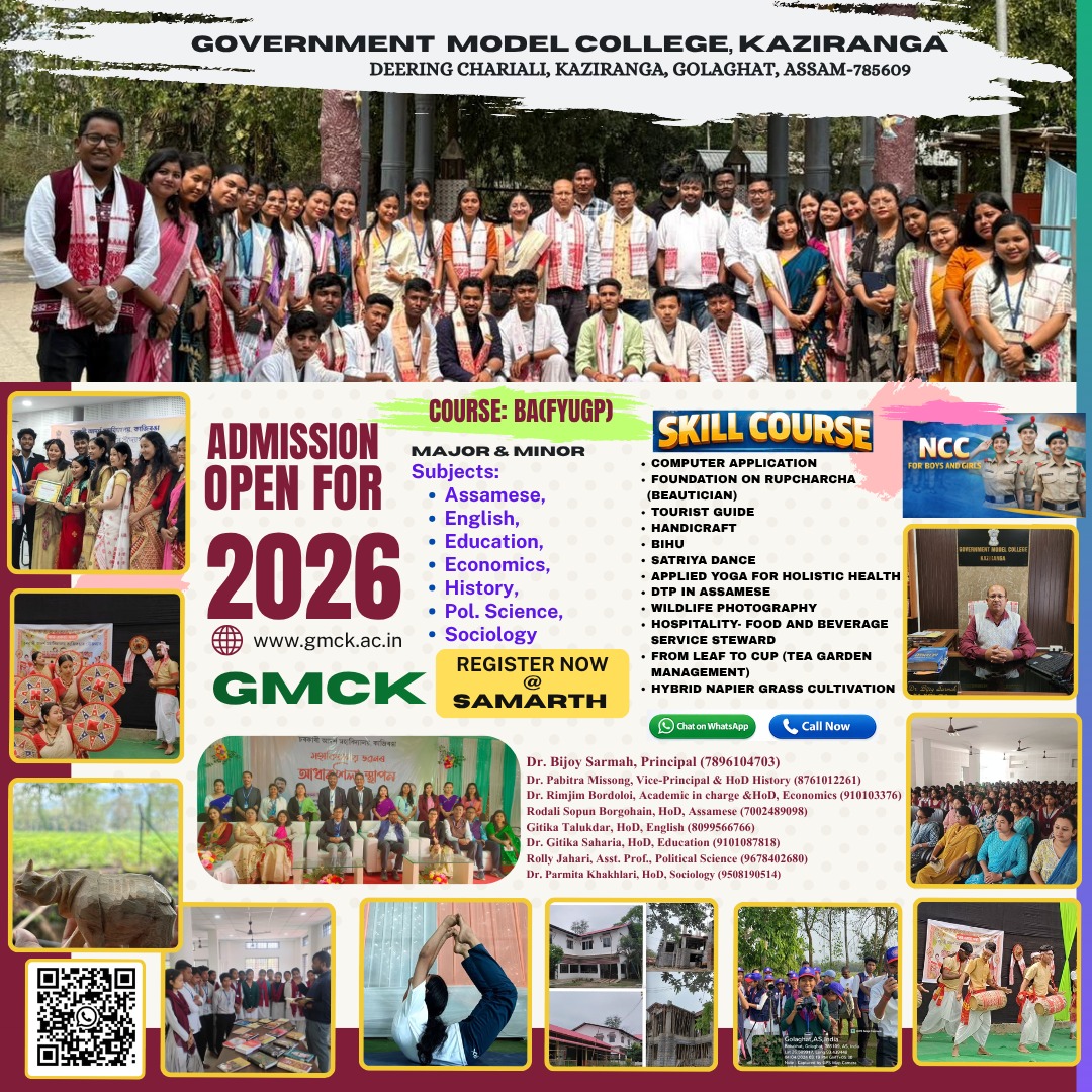 It is indeed great pleasure, and a great honor, for me to lead the young Government Model College, Kaziranga (GMCK) a State Government College located in Kaziranga, the UNESCO World Heritage Site and the habitat of the one horned Rhinoceros to build as higher education of eminence for teaching and learning in the field of humanitarian study. As I embark on this exciting journey, I invite you to join me and contribute towards the exciting field humanitarian studies in Teaching, Research, Consultancy, Society, Career development etc.